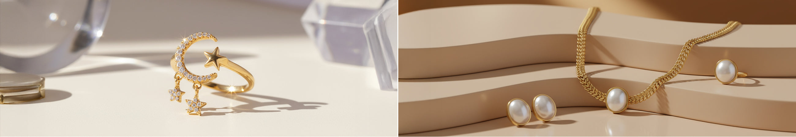Lunar Spark: 18K Crescent Star Ring