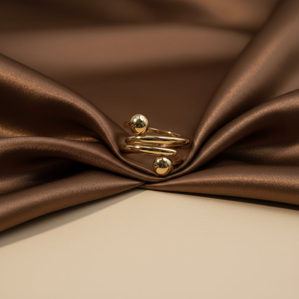 A modern geometric wrap with polished sphere and bar accents, crafted in 18K gold-plated, anti-tarnish stainless steel. Adjustable, hypoallergenic, and perfect for sleek everyday.
