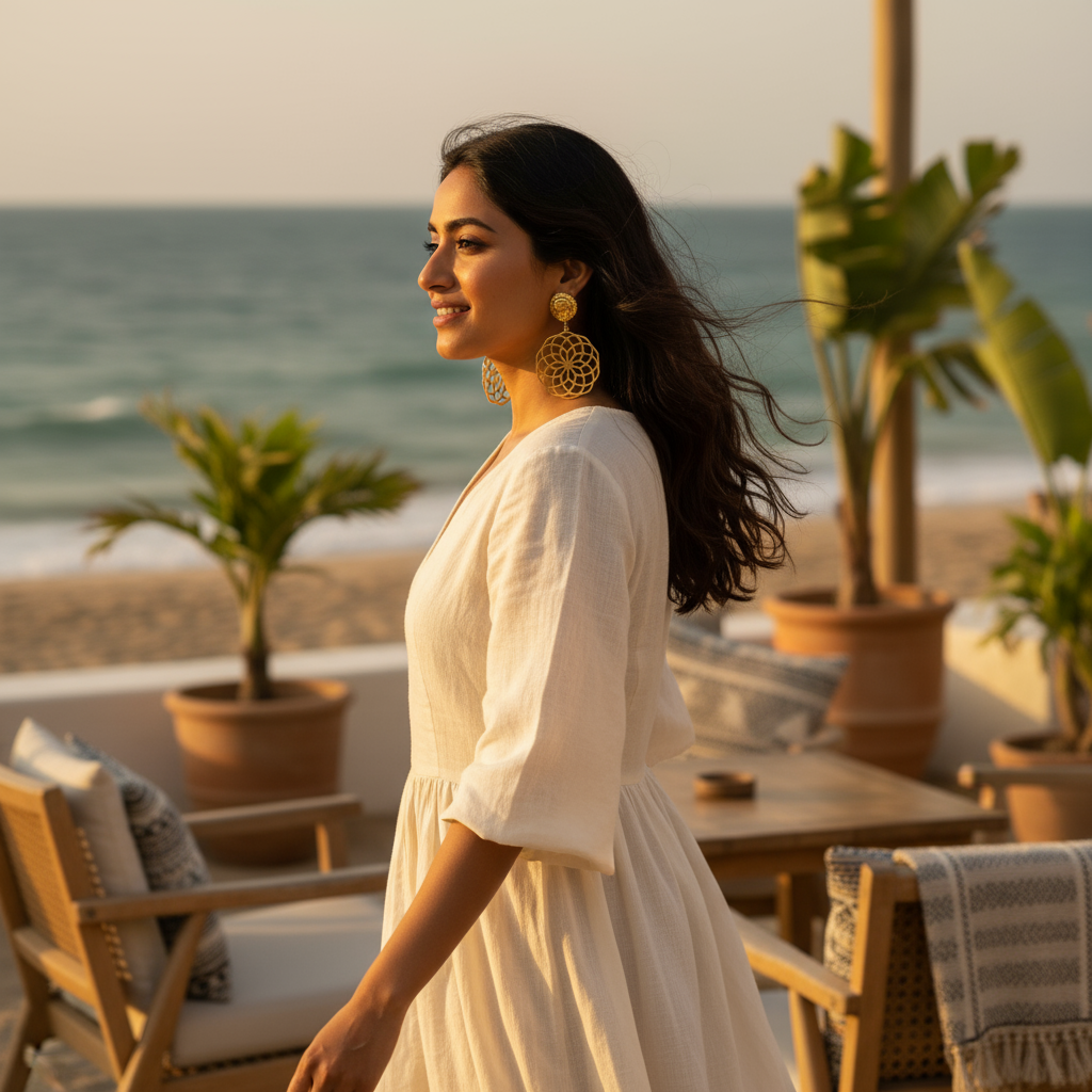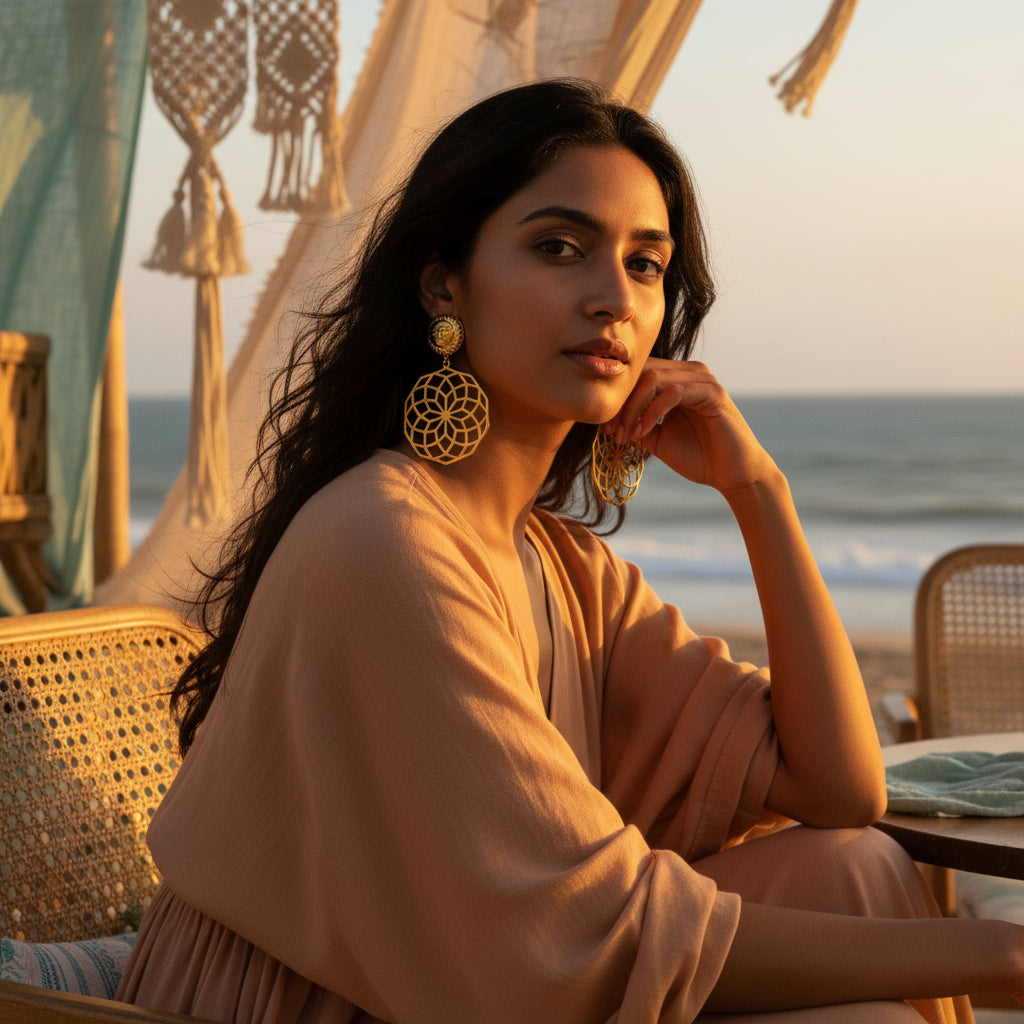 An artistic statement that glows as you move, these earrings evoke the divine feminine — radiant, powerful, and endlessly inspiring. Pair them with a flowy evening ensemble or a structured modern silhouette — they shine with equal allure in both.