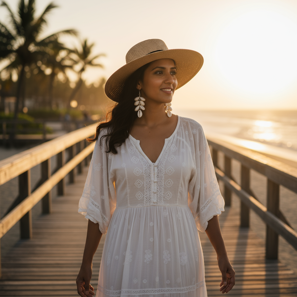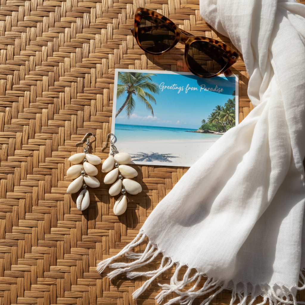 Hand-strung natural cowries fall in a graceful cascade, catching light with every step. light-weight, breezy, and beach-to-brunch ready—nickel-safe hooks and fluid movement make these your coastal-luxe statement, styled endlessly with linens, resort fits, or satin nights.